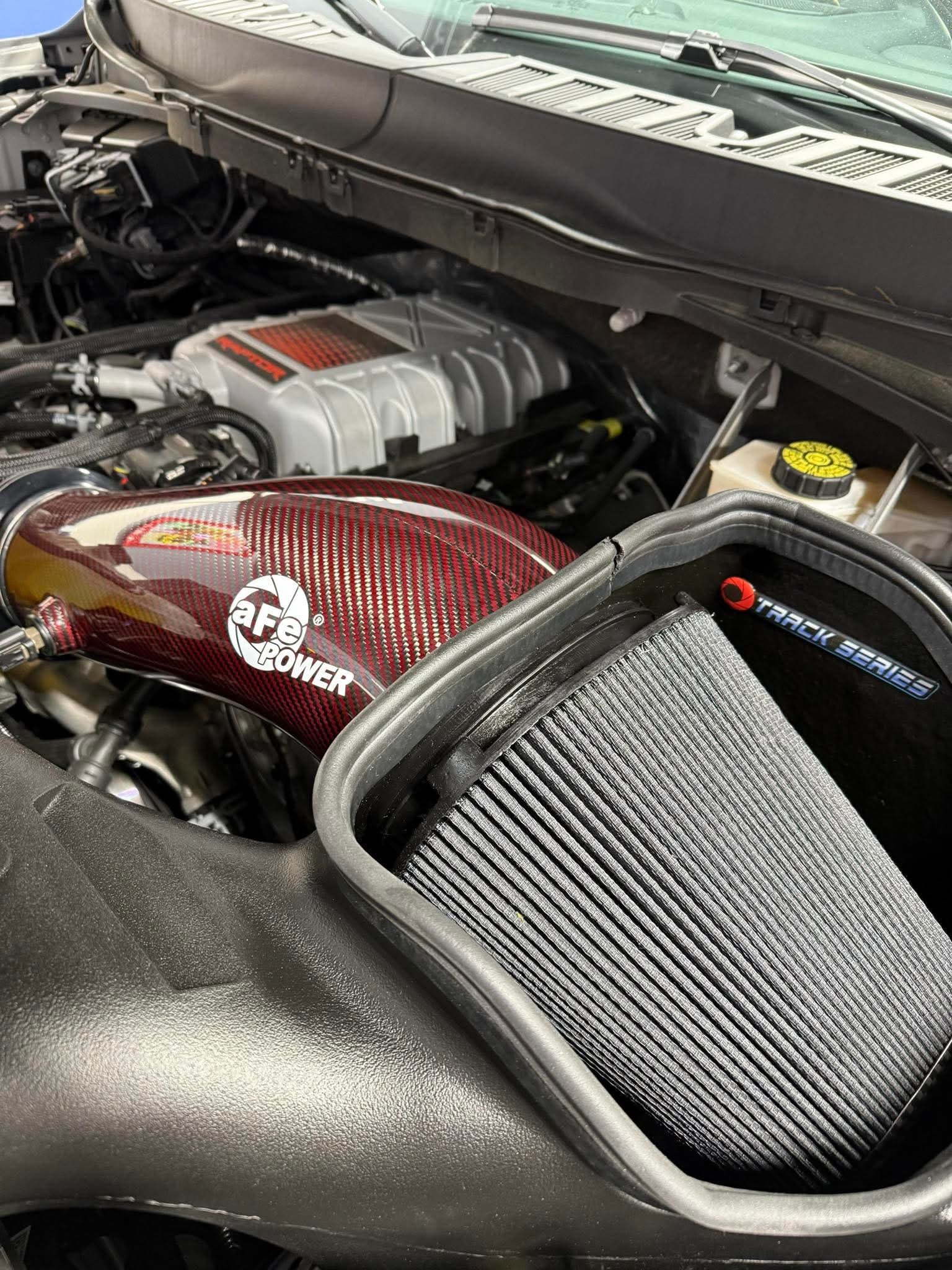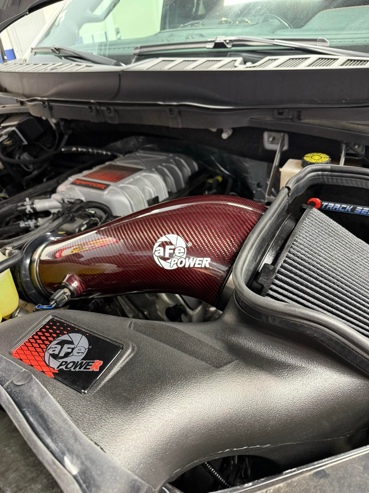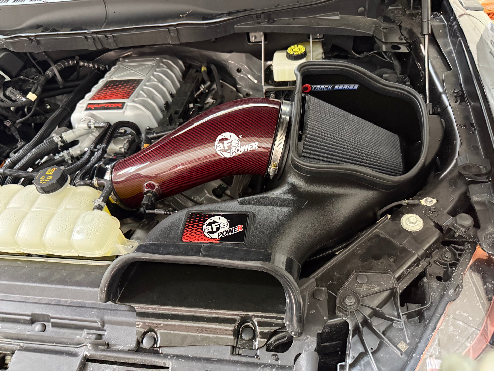 AFE 23-25 Ford Raptor R V8 5.2L Supercharged Red Carbon Track Series Air Intake w/ P5R Filter
