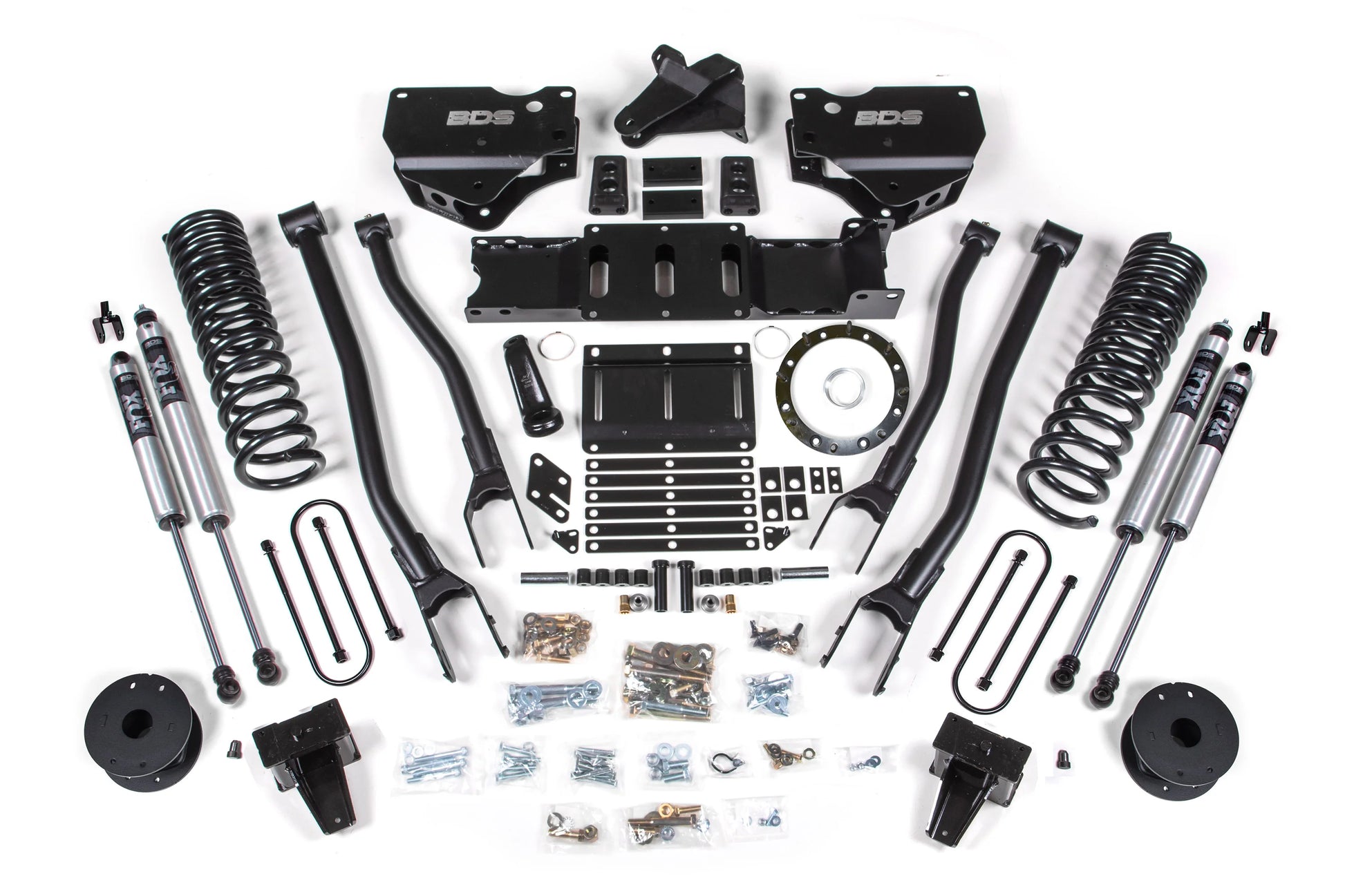 Up the ante of your RAM 3500 diesel truck equipped with factory rear air ride to the next level with this 6-inch 4-Link lift kit from BDS. Designed to improve stance, performance, and capability, this kit includes everything necessary to set your truck up right with clearance for up to 37" tires.
