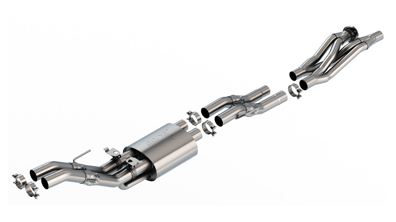 This 3" diameter Mid-Section includes Active Exhaust Valves. The ATAK® sound level delivers an aggressive, race-bred sound without any drone. It features our Polyphonic Harmonizer and SwitchFire™ technology. BORLA®'S Polyphonic Harmonizer Technology utilizes patented units that contain pipes of different diameters and lengths to create multiple exhaust notes that harmonize to deliver a clean, rich, full-bodied sound. Completely eliminating the turbulent center intersection of a standard X-Pipe, BORLA®'S patented SwitchFire™ design truly blends the combustion pulses from both sides of the engine for improved performance and a custom sound. It fits with either the O.E. tail pipes or BORLA® tail pipes 60727BC and 60727CFBA.