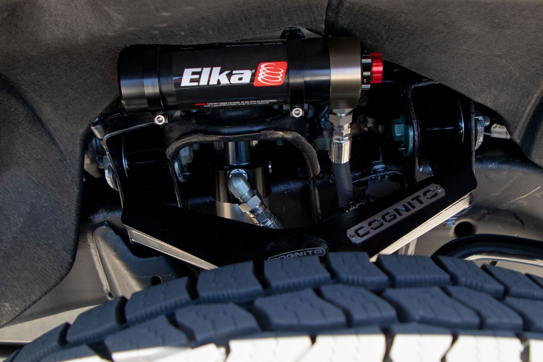This kit includes the Cognito Ball Joint SM Series Upper Control Arm Kit, Torsion Bar Adjuster Keys, Cognito Pitman and Idler Arm Support Kit, front and rear Elka Reservoir shocks.
