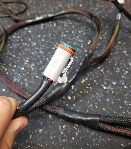 Custom made wire harness for Baja Designs LP9 and LP6 with 4 pin Deutsch Connectors, Harness is custom made for up to 5 lights and can be wired to turn on outboard lights seperate from inboard lights so you can have just the ambers on or just the white lights on. Harness includes 3 circuits, One for High Power, Amber Backlight and Ground. (Low Beam setting is not recomended). Each harness in custom made to your preference. Further options can include a relay to turn on the back light ambers automaticly with the factory running lights if desired.