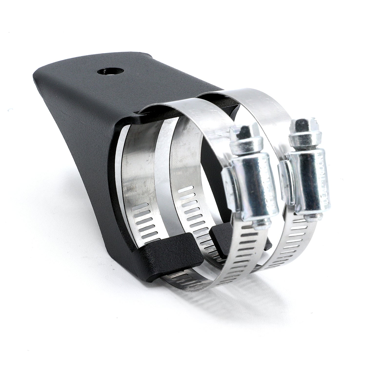 Horizontal Roll Bar Antenna Mount, with an adaptable mechanism, can mount to any 1.5in to 2in roll bar. This offers antenna mounting options for most horizontal roll bars. Crafted with black powder-coated stainless steel, combining durability and aesthetics. Comes with two hose clamps for secure mount. A 3/8in hole offers standard NMO antenna mounting.