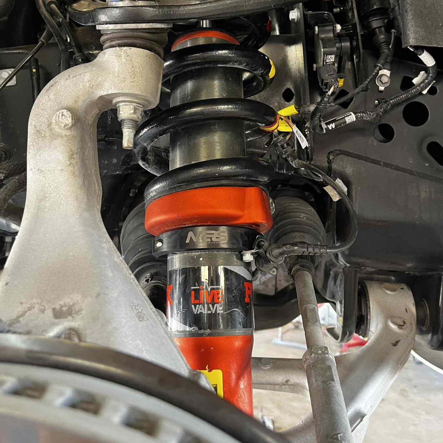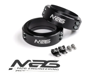M26 Engineering leveling spring perch collars for lifting the front of your ’21-'24 Gen3/Gen4 Ford Raptor. Developed around the OEM Fox Live Valve shocks equipped from the factory.