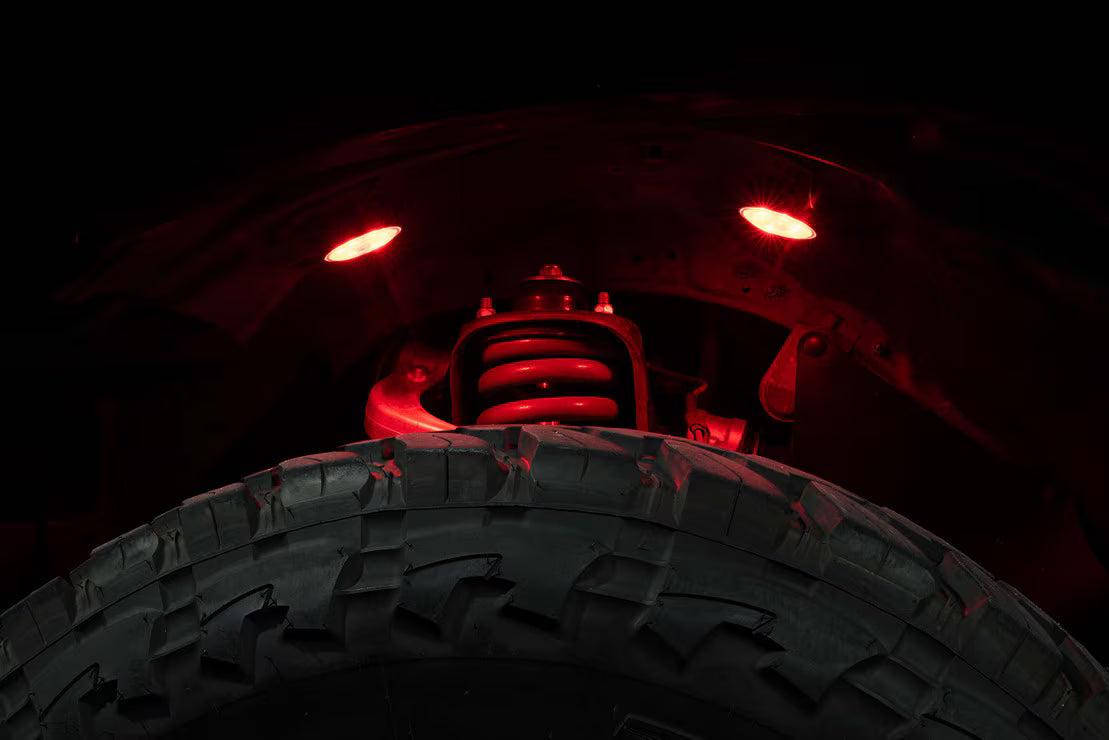 Introducing the Morimoto RGB Rock Light Kit - your ticket to the ultimate off-road adventure! This kit delivers unparalleled performance, intensity, and reliability, designed specifically for the most popular trucks and SUVs in the USA. With our proprietary second-gen rock lights, you'll enjoy dazzling illumination on any terrain, thanks to 6x 3W RGB LEDs and high-clarity polycarbonate lenses. But that's not all! Control your rock lights effortlessly with the RGB Bluetooth Controller and Morimoto's XBT Color Control app, compatible with both Android and iOS devices. Installation is a breeze, thanks to integrated mounting options and rubberized magnetic mounts for a secure fit without drilling. With a lifetime limited warranty, this kit is built tough, featuring diecast housings and 2mm thick Makrolon Polycarbonate lenses. Elevate your off-road experience and light up the night with the Morimoto RGB Rock Light Kit --the ultimate choice for enthusiasts who demand the best.