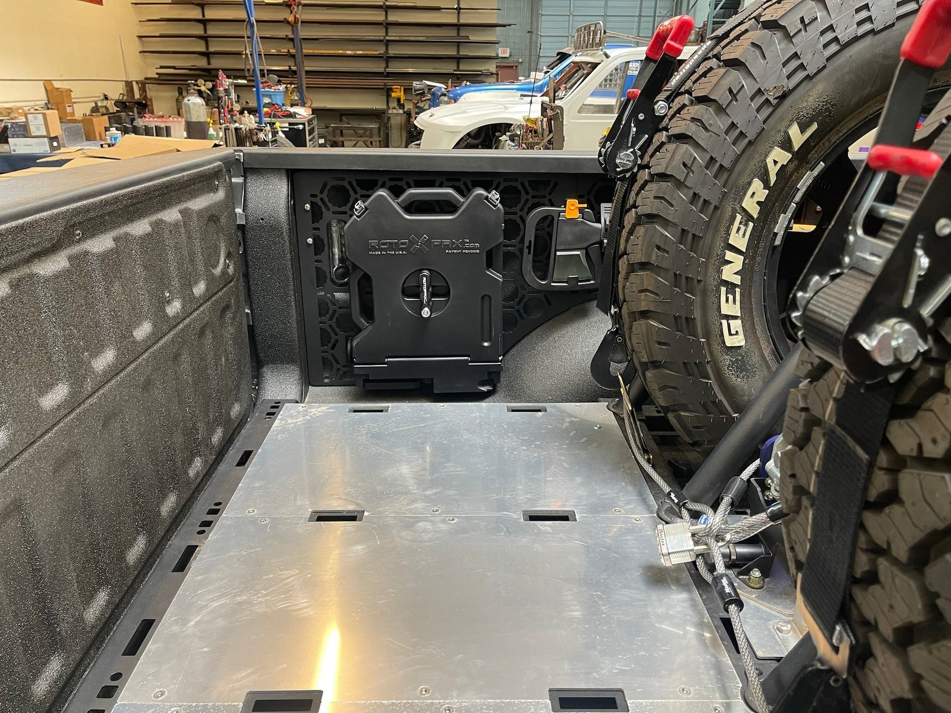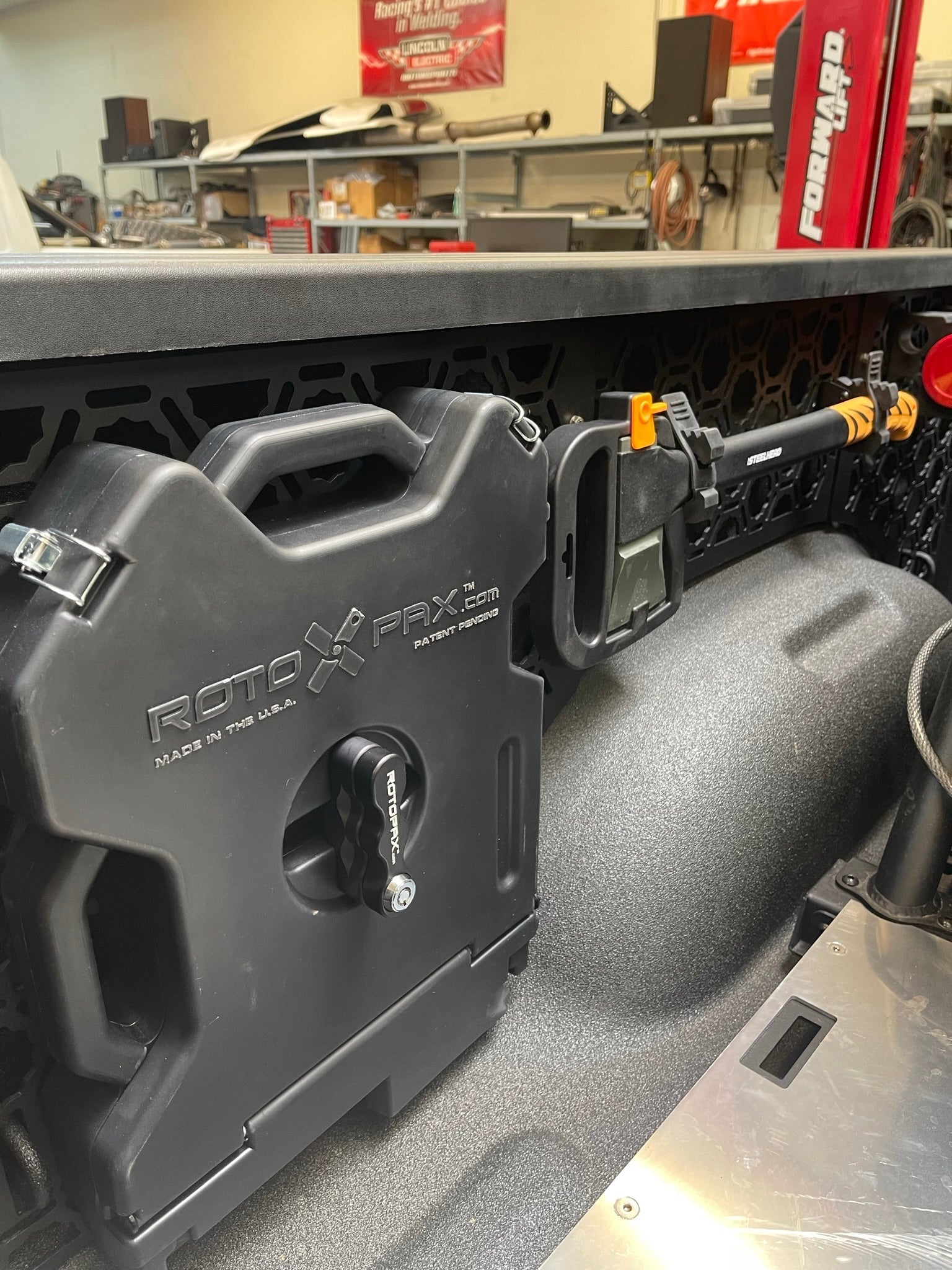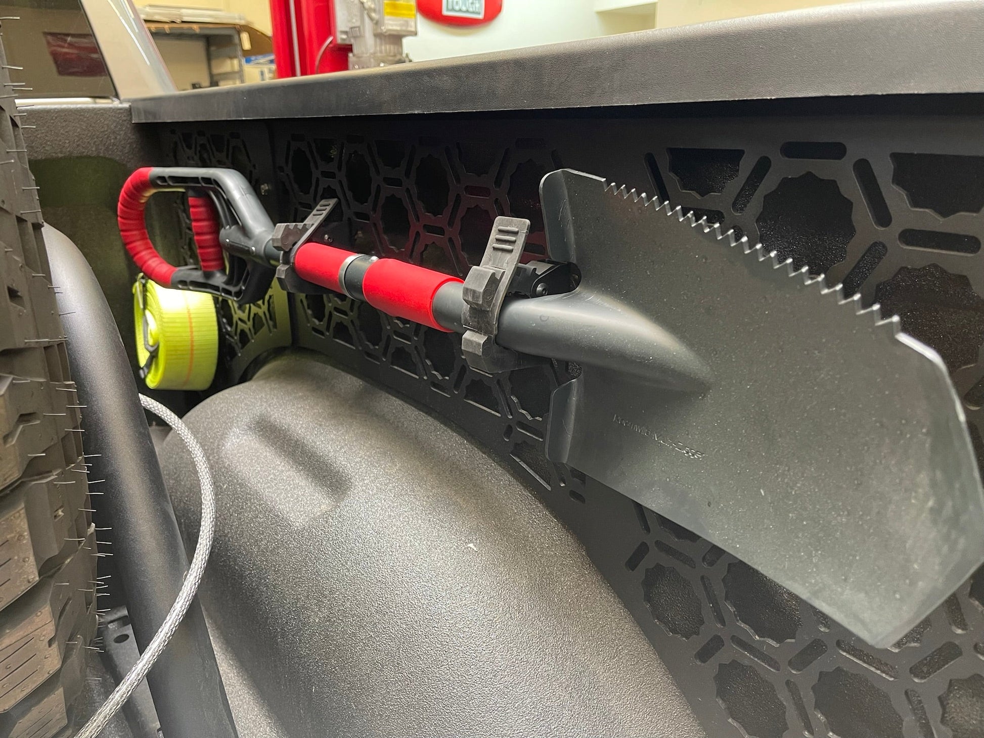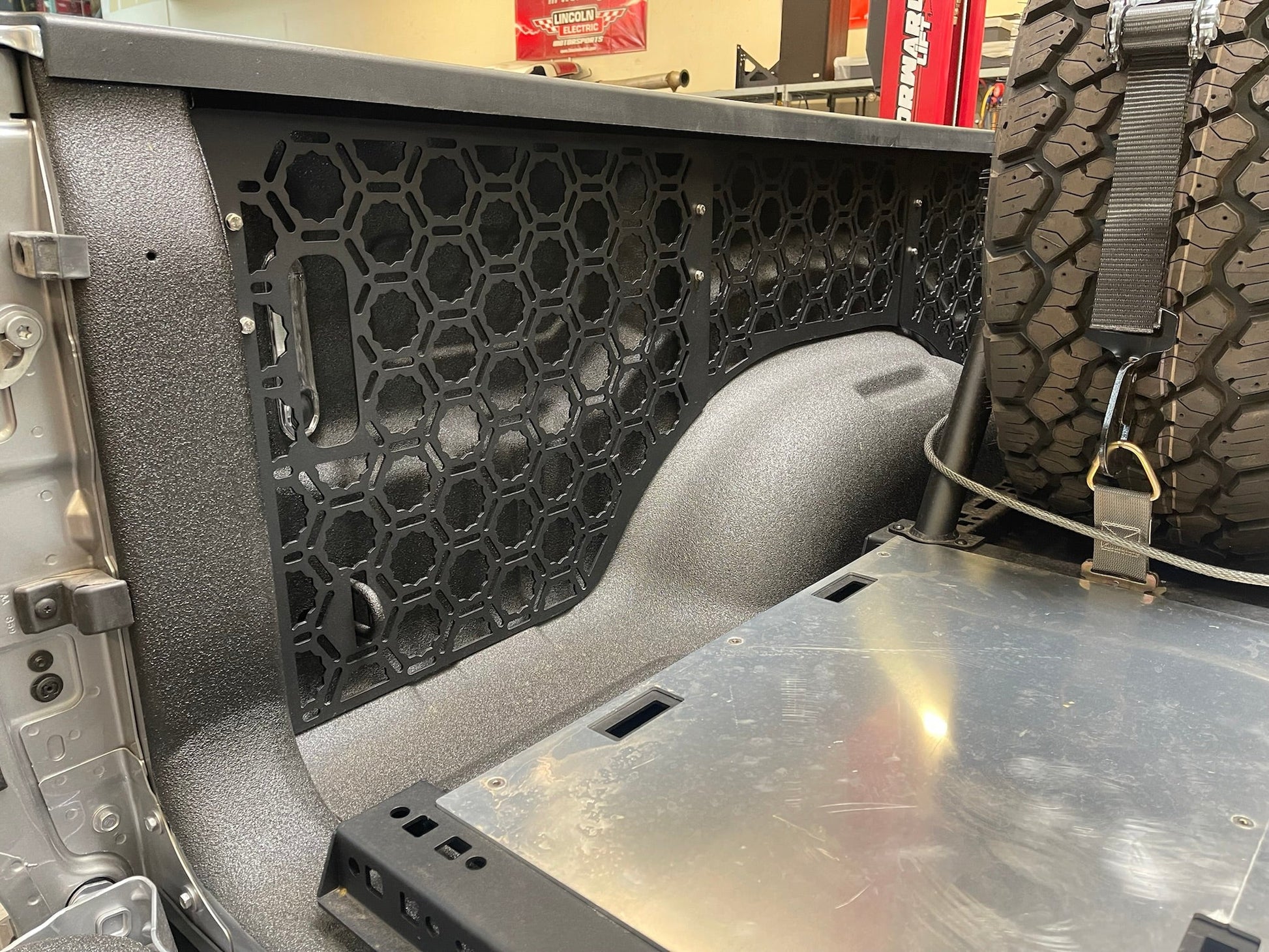 The new Adapt-a-panel bed organizer panel kit gives you the ultimate flexibility in getting your gear organized. The panel is made out of .135" thick 1018 steel for the ultimate strength. Quick attach to existing hardware locations with the included hardware kit. Use the Grid Inserts to mount any accessory you want to carry, even the heavy stuff like power tanks and high lift jacks. Grid Inserts can be added any time after install to make it easy to change your load out depending on your situation. Full panel coverage even over the cleat area gives you the most square feet of mounting surface available.
