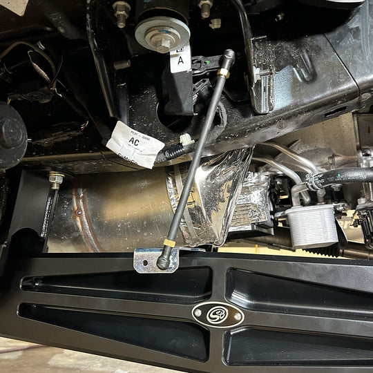 An S&B Track Rod relocation bracket is required with all of our leveling and lift kits. Our 105084 track rod bracket is designed to correct the frame side mounting position for all 2-3" lift kits and retains the factory track rod. The bracket itself is made of 3/8” steel for extreme strength and powder coated black for corrosion resistance. We tested almost 20 different revisions of our track rod relocation brackets to perfect the design and ensure the best ride possible.