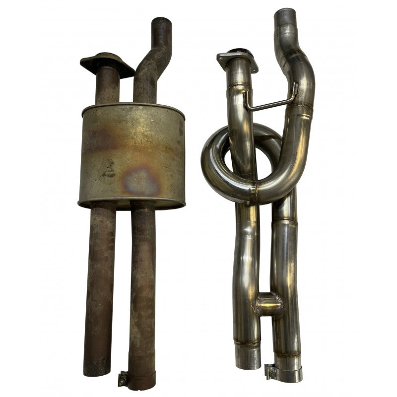 Our Trombone resonator delete kit is a game changer for your Gen 2 Raptors or HO Limited F-150. Now your Gen 2 can sound like a Gen 3! Our equal length "trombone" resonator delete is a one piece construction for easy installation and made of 3" mandrel bent 304 stainless steel. We included an h-pipe in the design to balance out both driver and passenger side exhaust after the loop because the factory muffler does not have a cross over in it.
