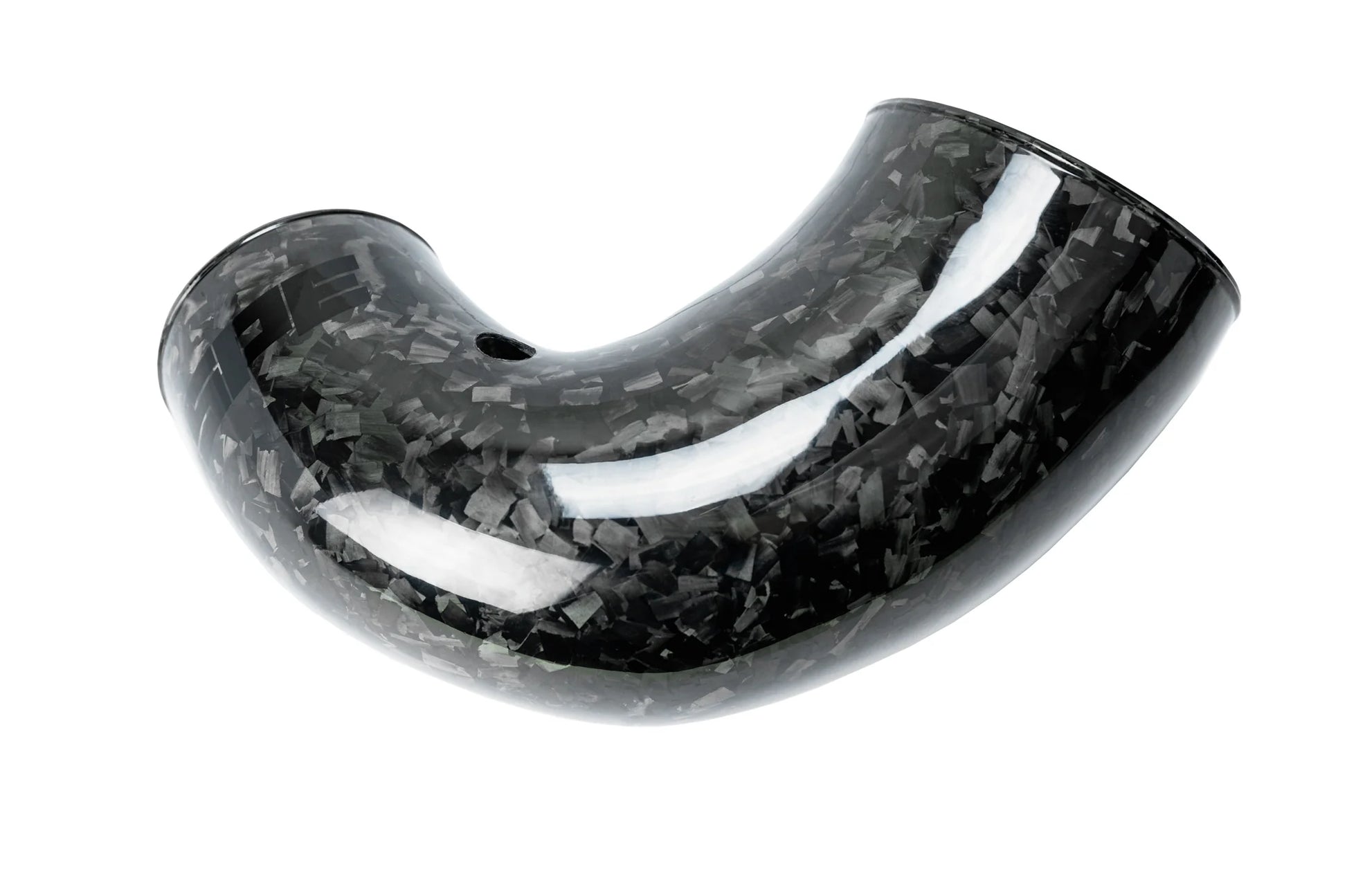 Our main inlet tube is made of genuine 3k twill carbon fiber manufactured in billet molds and then processed in an autoclave. All excess resin is pulled out under vacuum creating a strong light weight part. It has a large 4.5" opening on the throttle body side terminating to a large 6" opening for the filter engineered in to the best possible shape from point A to B with no weird flat clearance spots. It fills the void and uses all the space provided.